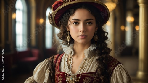 Girl at a Ball: portrait of a girl dressed in a combination of different historical fashion styles from different time periods.