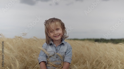 Girl evaluates wheat in the field