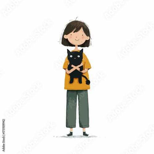 Girl holding a black cat lovingly with a gentle and tender embrace