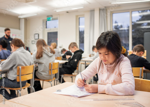 Girl in classroom, Sweden