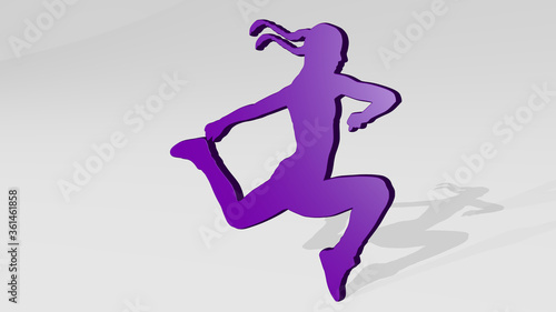 girl on the wall. 3D illustration of metallic sculpture over a white background with mild texture. beautiful and woman