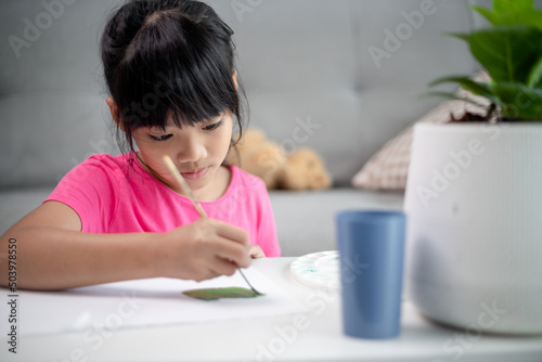 Girl Painting Picture On Table At Home