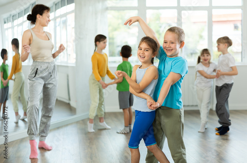 Girl paired up with boy and training to perform slow couple dance, rehearse performance. Devotion of modern trend pastime, active lifestyle and hobbies