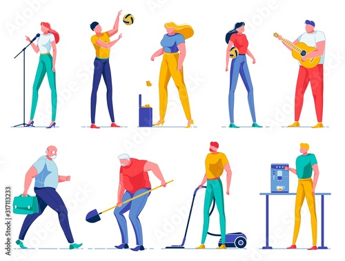Girl Sings in Microphone, Boy Playing Volleyball.