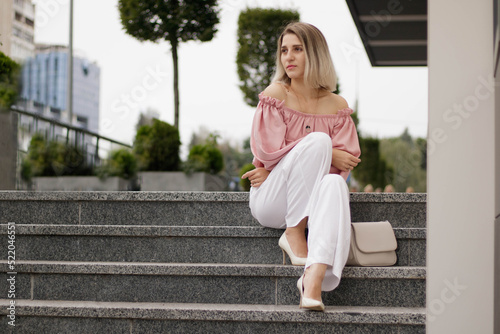 Girl sitting on steps thinking