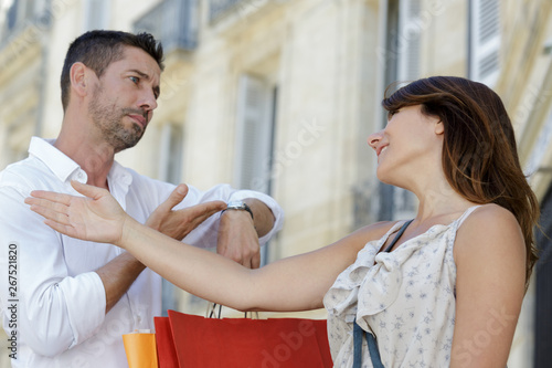 girlfriend urging his boyfriend for more shopping time