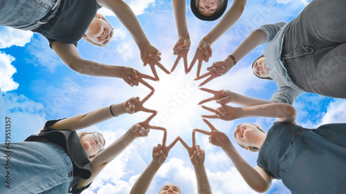 Girlfriends girls make circle shapes from their fingers and hands and then connect them.