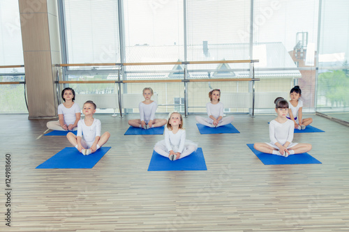 Girls doing gymnastic exercises or exercising in fitness class