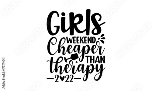 Girls-weekend-cheaper-than-therapy-2022, Hand drawn typography poster, Good use for logotype, symbol, cover label, product, poster title or any graphic design you want, Inspirational vector typography