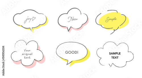 Girly and cute speech bubble frame icon set, simple hand-drawn speech bubbles, vector illustration material, monochrome, black and white, white background