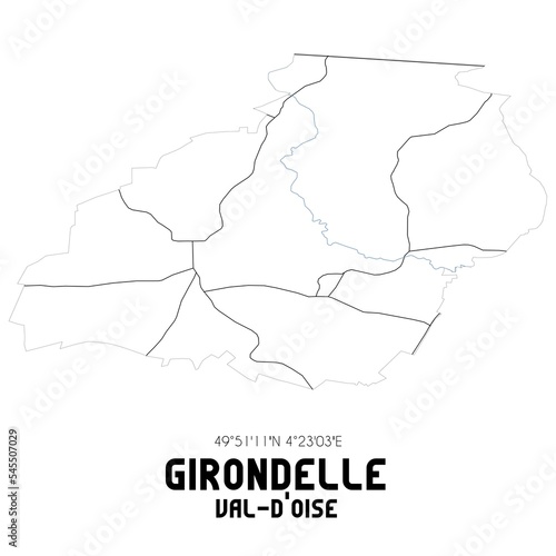 GIRONDELLE Val-d'Oise. Minimalistic street map with black and white lines.