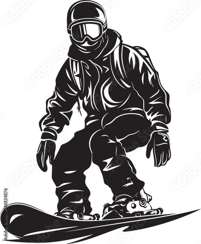 Glacier Glide Vector Icon of Snowboarding Man Summit Swoosh Snowboarding Man Icon Design