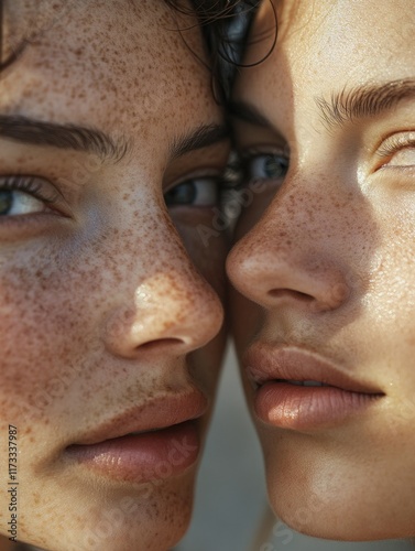 Glamorous Sun-Kissed Couple Embracing in a Soft Focus Photoshoot