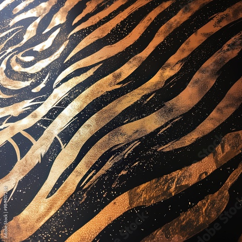 Glamorous tiger print with sophisticated gold patterns for fashion design.