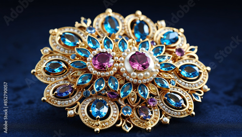 glamour product photo of an exquisite brooch on soft velvet, Generative AI