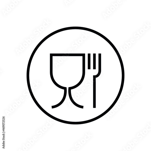 Glass and fork icons, in a circle. A pictogram indicating that the packaging is approved for food products. International packaging emblem used for the labeling of food contact materials in the EU.