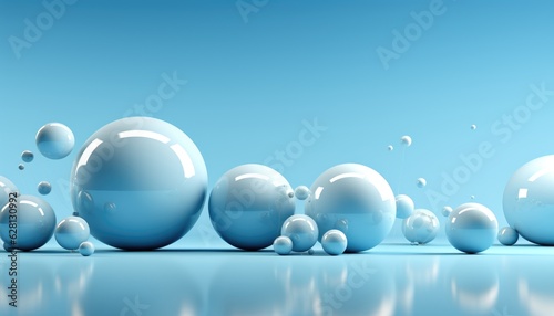 Glass balls on a blue background. Modern background of glass spheres. Generative AI.