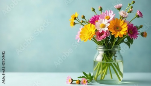 Glass container filled with fresh meadow sweet flowers, plants, meadowsweet, botanical