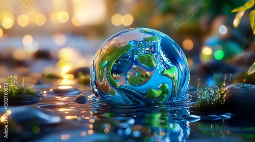 Glass Earth Globe in Tranquil Water - Environmental themes