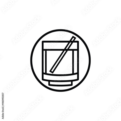 Glass Icon with Straw in Black Outline on Transparent Background Symbol