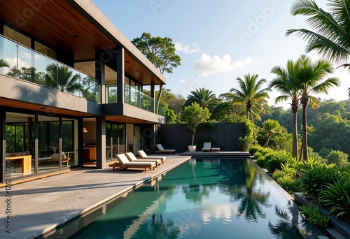 Glass Jungle Retreat in Bali: Modern Luxury Home, Infinity Pool, Lush Palm Tree & Jungle Views, Tropical Paradise Getaway.