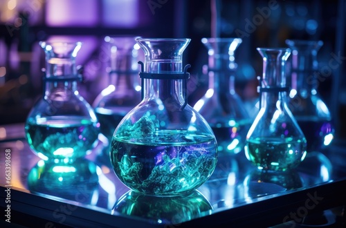 glass laboratory flask liquid. petri dish. laboratory tubes. The concept of medical and chemical analysis. Biological study of drugs. copy space.