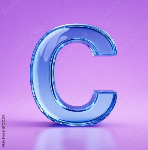 Glass Letter C, Blue Crystal Alphabet, 3D Render