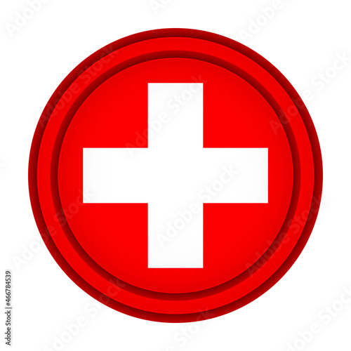Glass light ball with flag of Switzerland. Round sphere, template icon. Swiss national symbol. Glossy realistic ball, 3D abstract vector illustration highlighted on a white background. Big bubble