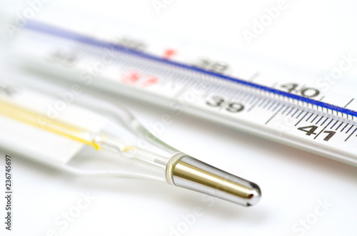 Glass medical thermometer thermometer for measuring body temperature shot on a white background