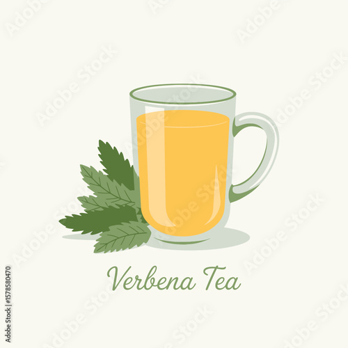 Glass Mug of Verbena Herbal Tea with Leaves
