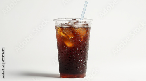glass of cola with ice on white background