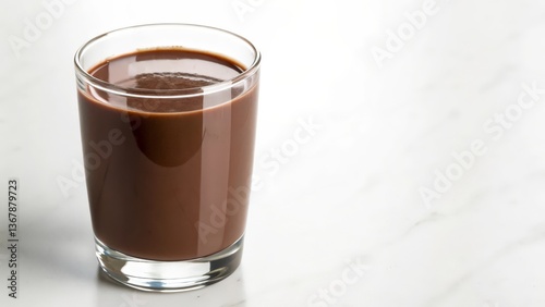 Glass of Cold Chocolate Milk with Condensation on White Background