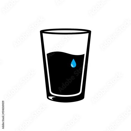 Glass of dark liquid with blue droplet, minimalistic design, copy space