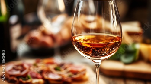 Glass of Fine Wine and Gourmet Appetizers on Rustic Table : Generative AI