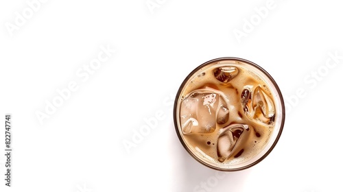 Glass of ice coffee isolated on white background from top view : Generative AI