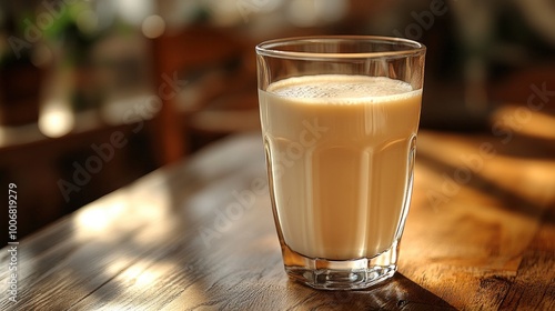 Glass of Milk on a Wooden Table