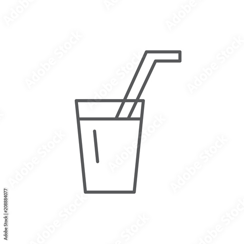 Glass of soda or juice with straw editable outline icon isolated on white background.