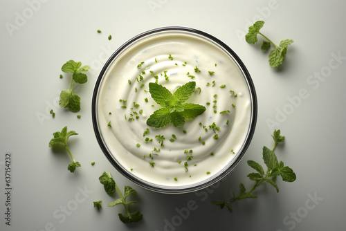 Glass of water with mint. smoothie with mint. Yogurt with fresh flowers and mint in a glass. Generative AI
