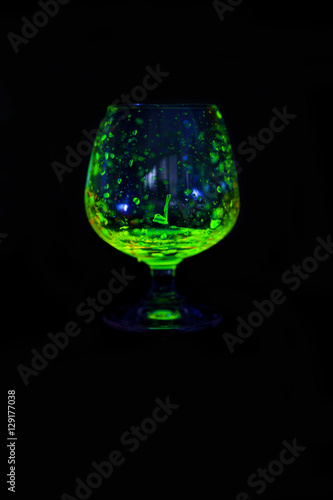 Glass of whiskey glow in the dark.