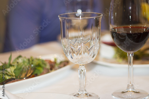 glass of wine on the table in the restaurant