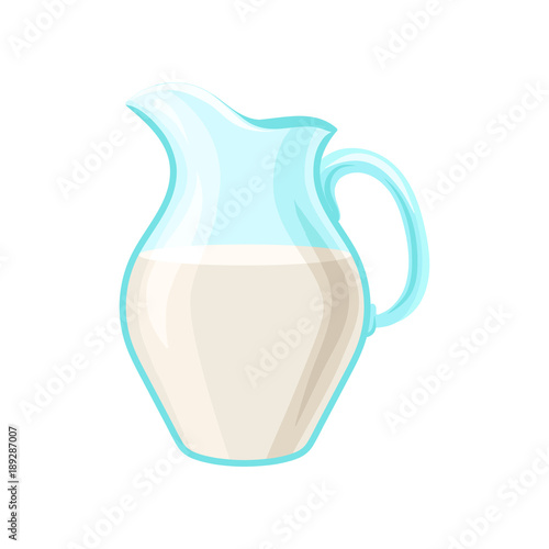 Glass pitcher of milk, dairy product cartoon vector Illustration