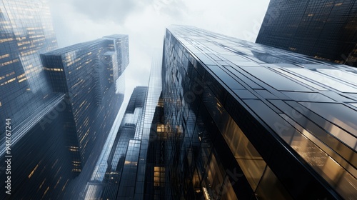 Glass Skyscrapers Reaching Towards the Cloudy Sky