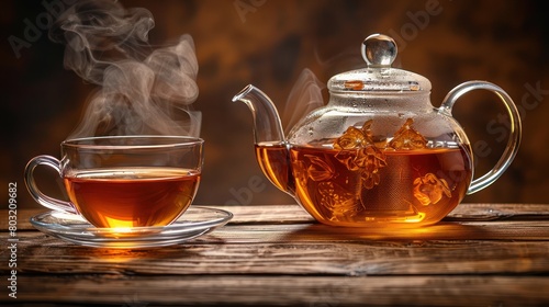 Glass Teapot and Tea Cup on Table