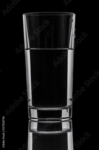 Glass with water on black background