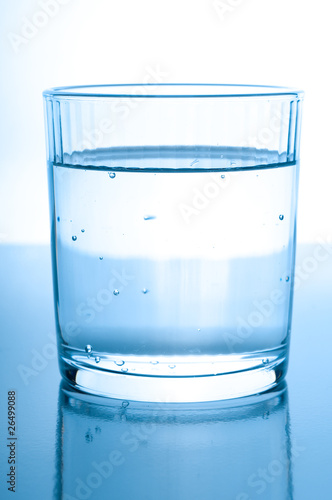 glass with water on glossy background