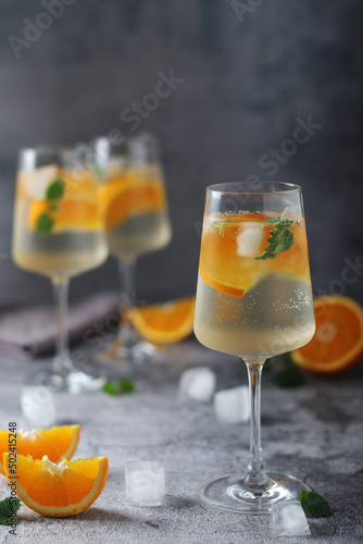 Glasses with traditional Hungarian drink spritz - mix of wine and mineral water