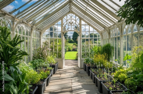 Glasshouse with garden view