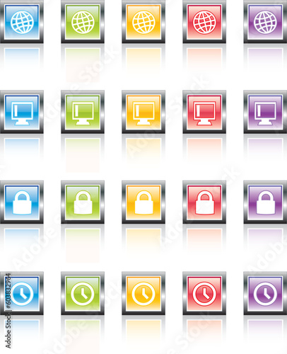 Glassy, metallic colorful Web icons-easy to edit. No transparencies
