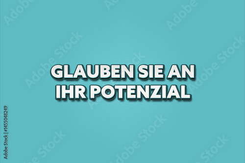 Glauben Sie an Ihr Potenzial (Believe in your potential) - A turquoise banner illustration with white text.
