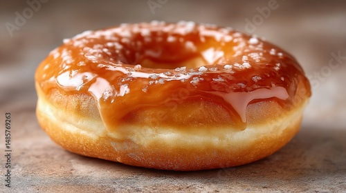 Glazed caramel doughnut delight with sprinkles